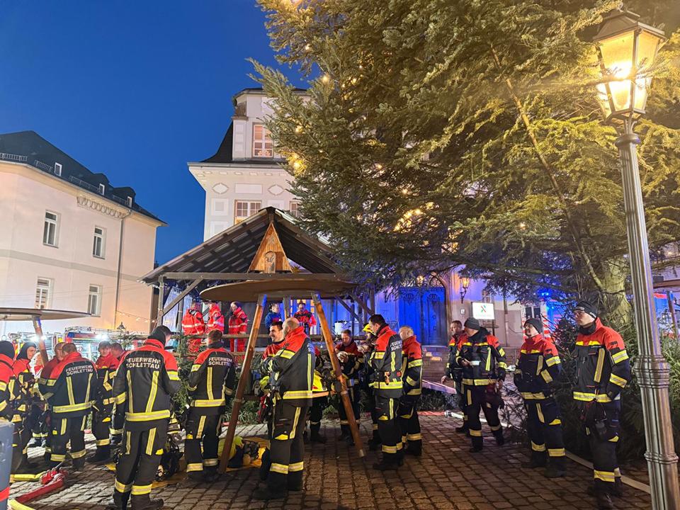 FF Schwarzenberg, FF Grünstädtel, FF Heide, FF Bermsgrün, FF Sachsenfeld, FF Neuwelt, FF Raschau, FF Beierfeld, FF Grünhain, FF Aue, FF Breitenbrunn und FF Scheibenberg, FTZ, Polizei, Deutsches Rotes Kreuz, Johanniter, Bergwacht Rittersgrün, THW, Bergedienst Car Lack, Bauhof und Ordnungsamt Stadt Schwarzenberg und KBM (Quelle: FFW Schlettau)